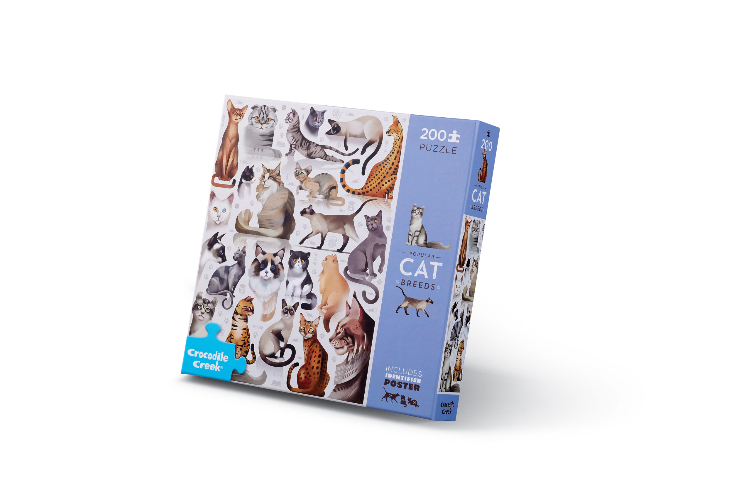 Calling all cat lovers! This enchanting 200-piece puzzle features a captivating collection of popular cat breeds illustrated in beautiful watercolor style. From sleek Siamese to fluffy Persians, puzzle enthusiasts will enjoy identifying and assembling over 20 beloved feline breeds.