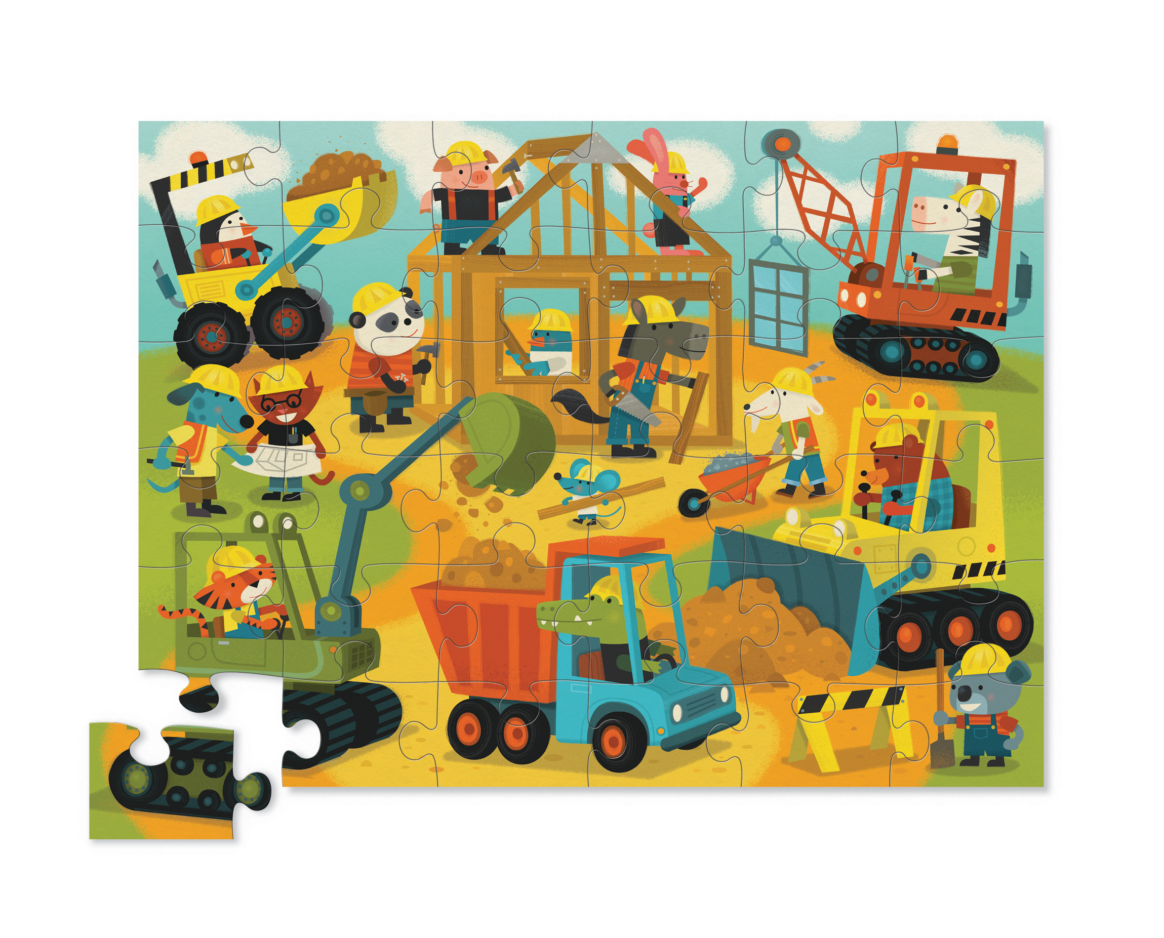 Busy Builders 36-piece floor jigsaw puzzle will delight all ages, particularly those who love construction and big machines! The 50 x 68 cm floor puzzle is not only significant in size but also has beautiful, colorful, and complex illustrations.