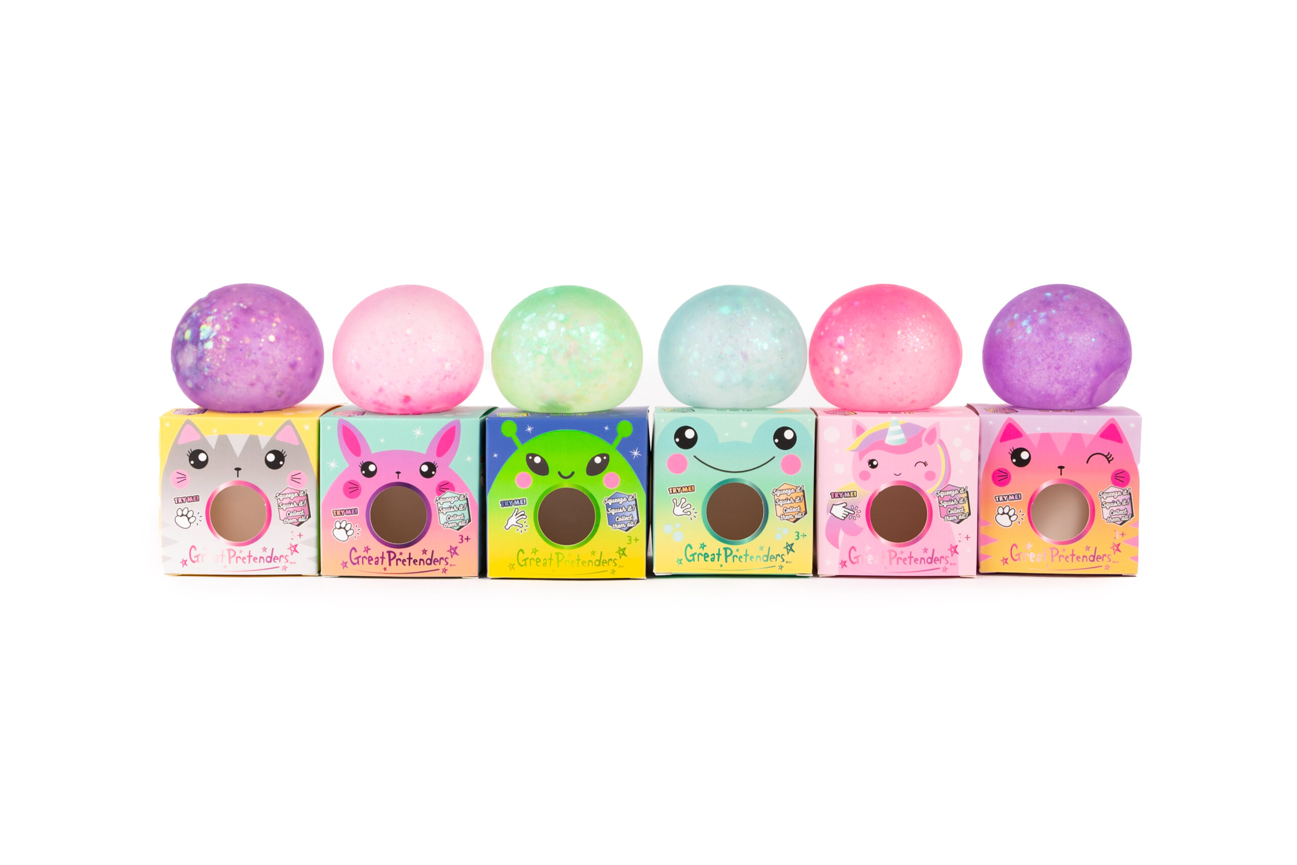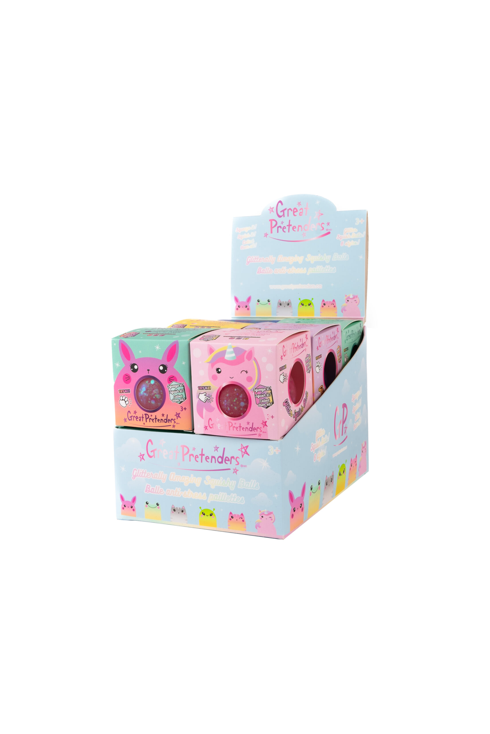 Glitterally Amazing Squishy Balls (12 pcs), 5 colours assorted, in Display Box