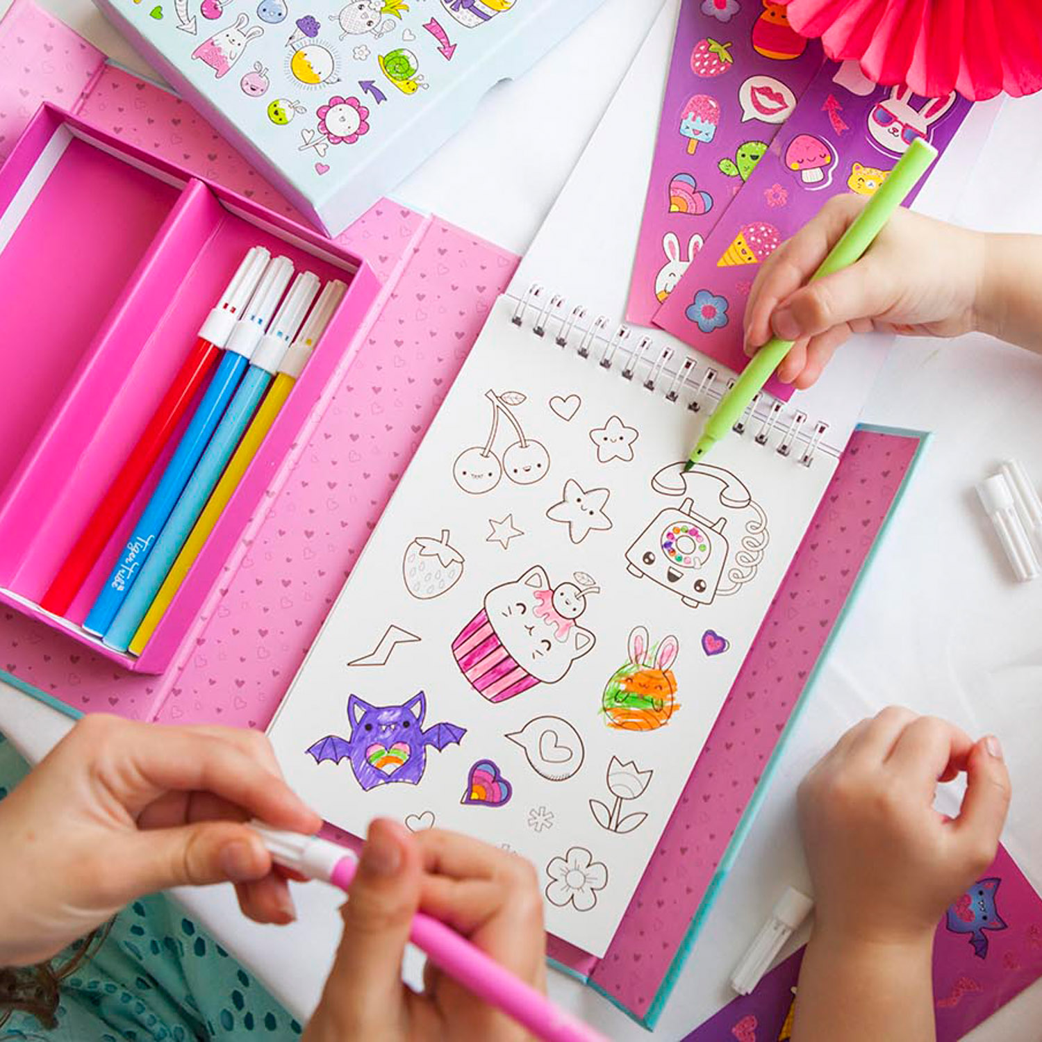 - A spiral pad with 16 pages of stickers to colour in